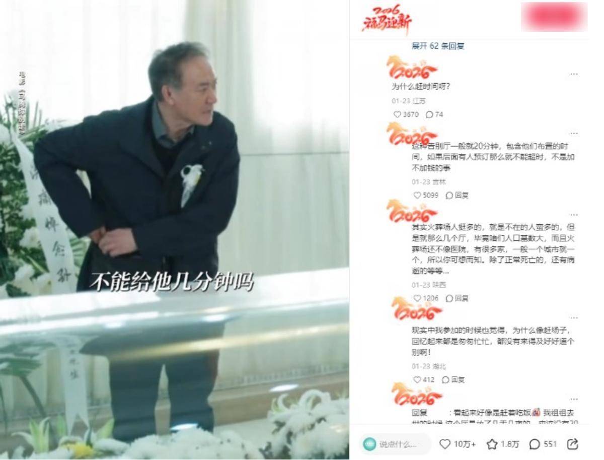 影片中有一段关于老林去参加战友追悼会的场景,设定好的时间,模板化的悼念流程。儿女催促着司仪尽快结束,以免耽误吃饭。这样的一幕刺痛了老林,他怒斥战友子女:“他养了你们四十年,不能给他几分钟吗?”